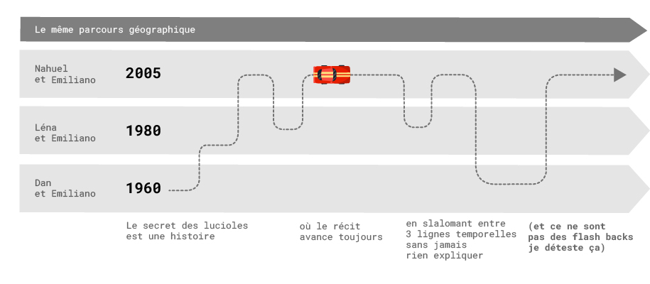 Le Secret des Lucioles est une histoire chorale construite autour de trois lignes temporelles (celles de Dan, Léna et Nahuel) qui s’entrelacent pour raconter une seule histoire : celle de la transmission invisible. Un récit qui repose sur un geste simple mais fondamental : voir autrement. Voir ce qu’on ne regarde plus. Ce qu’on n’a pas appris à nommer. Un carnet, un voyage, une disparition, une enquête : derrière ces éléments narratifs se cache un cheminement plus profond, où chaque personnage doit traverser le deuil, la mémoire, la filiation et l’effacement, pour rejoindre une forme de lumière intérieure. Entre monde tangible et perception altérée, cette histoire propose une expérience où le réel s’élargit peu à peu, jusqu’à devenir poreux. C’est une fable douce et grave à la fois, une traversée sensorielle qui questionne nos héritages, notre rapport au vivant, et ce que nous laissons derrière nous, sans jamais poser de certitudes.